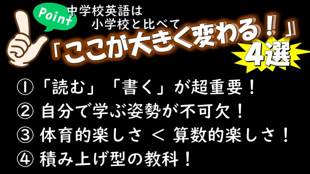この4つを頭に入れて、これからの中学校英語に取り組んでいこう。